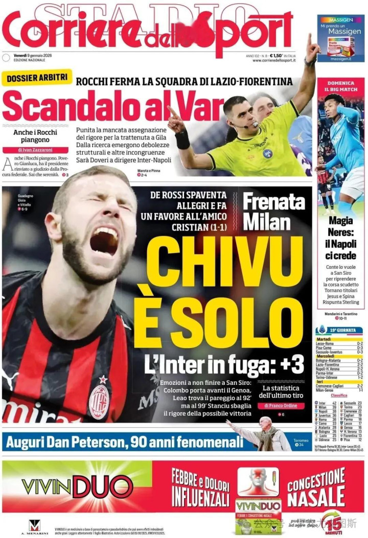 1、莱奥补救米兰,但国米“潜逃”了。在圣西罗对阵热那亚仅仅1比1战平,狮鹫军团第99分钟罚丢点球。阿莱格里承认:“赢得了一分。”王人沃额外3分,距离冬季冠军仅一步之遥。