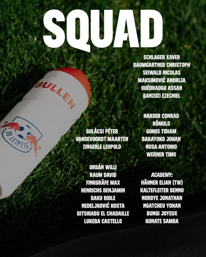 直播吧1月2日讯莱比锡将前去葡萄牙进手脚期5天的冬训,大名单如下,维尔纳在列。扬·迪奥曼德因非洲杯而缺席。